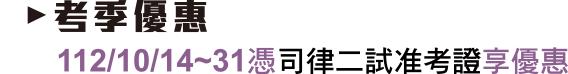 - ※以上優惠方案皆不含一試實務選題班、二試判解文章班、國作文